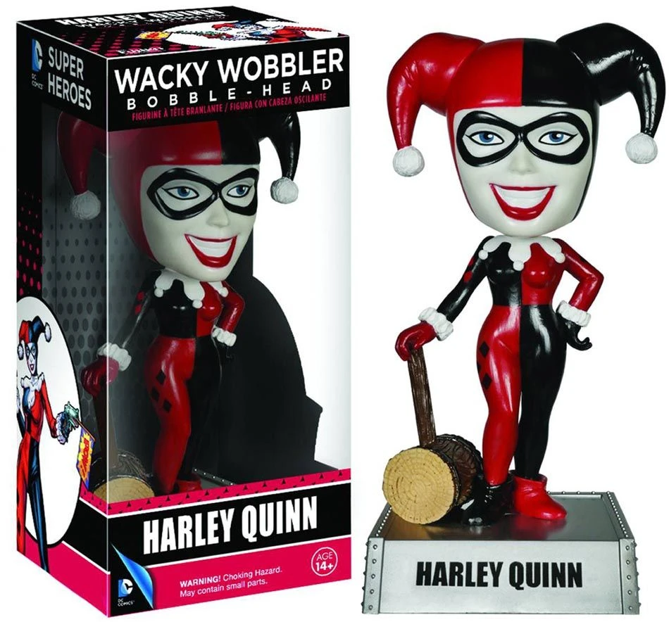 Funko Wackelkopf Figur von Harley Quinn aus dem DC Comic Universum. Größe: ca. 15cm, Mit Standbase und Harley Quinn-Schriftzug.