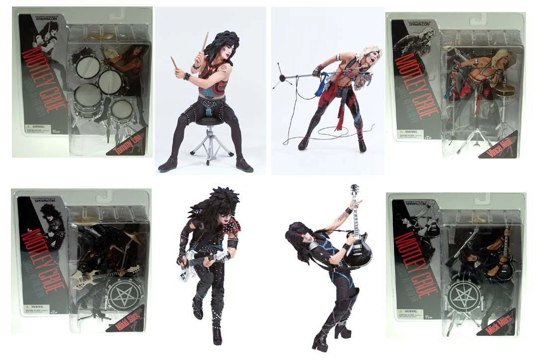 McFarlane 4er Figuren Set mit den Mitgliedern der Metalband Mötley Crüe: Vince Neil, Tommy Lee, Nikki Sixx und Mick Mars. Jeder Figur liegt ein Teil des umfangreichen Drumsets bei. Mit diesem 4er Figuren Set kannst Du die Band vollständig mit sämtlichen Accessoires präsentieren. Die Figuren kommen jeweils einzeln verpackt in einer Clamshell.