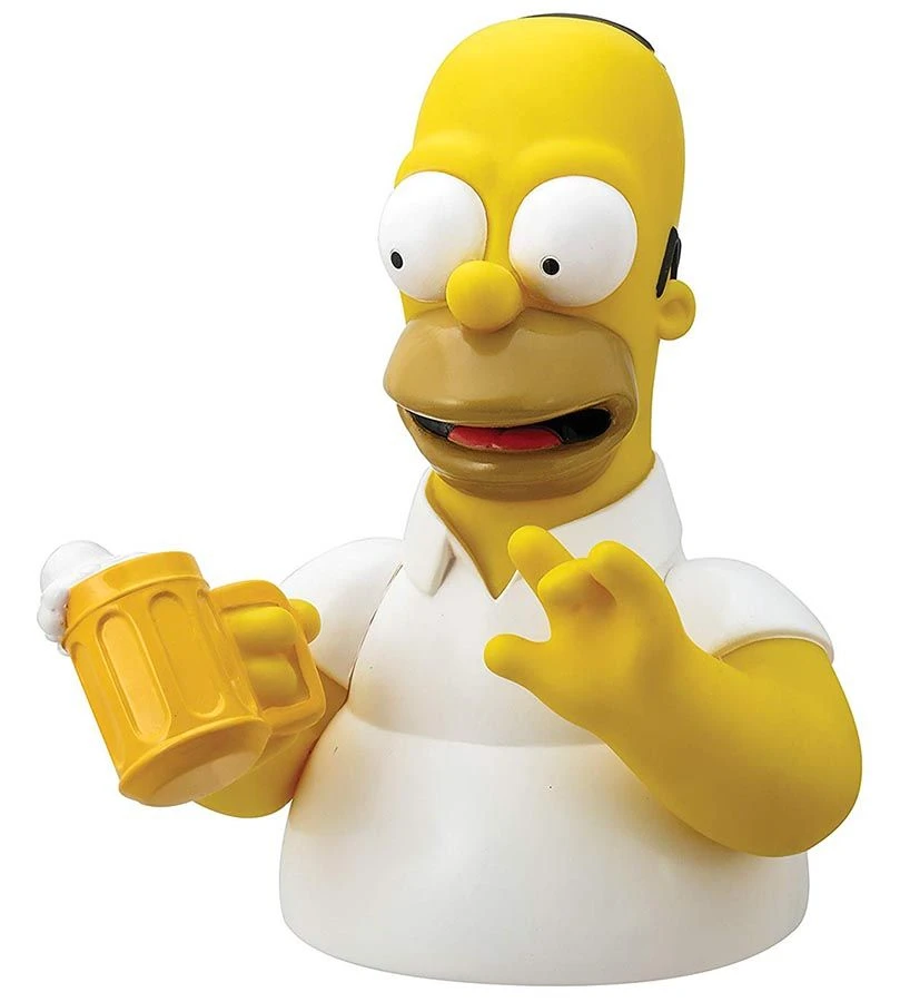 Detaillierte Monogram Spardose mit der Büste von Homer mit einem Bier in der Hand aus der beliebten Zeichentrickserie The Simpsons.