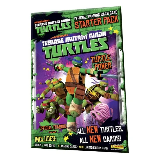 Starterset zum Panini Sammelkartenspiel Teenage Mutant Ninja Turtles. Der Starter enthält: 2 Booster, 1 Gameboard, 2 limited Edition Cards und 1 Checkliste.