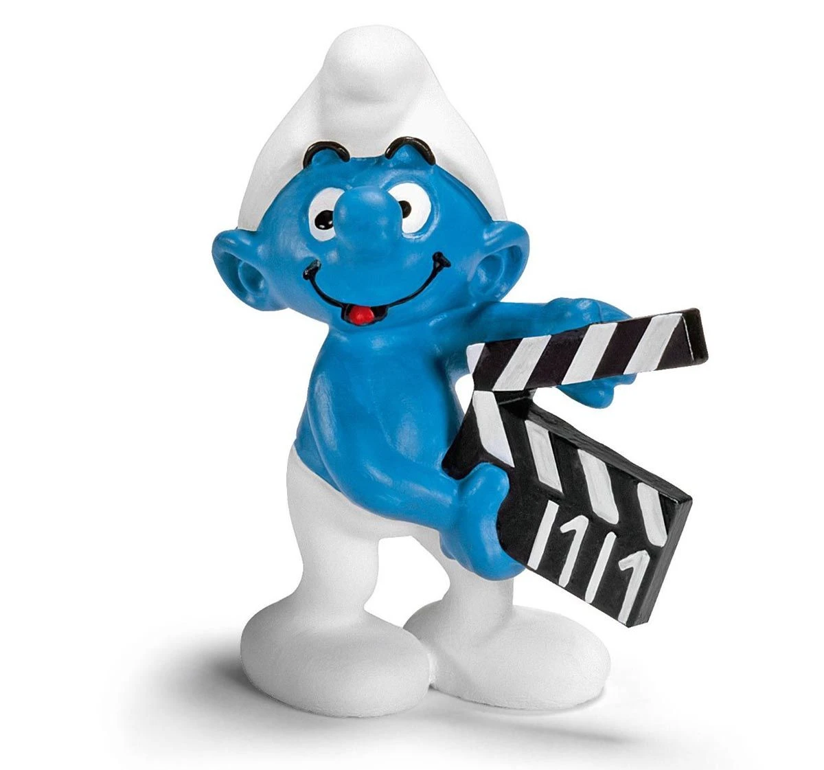 Liebevoll gestaltete Schleich Spielfigur Schlumpf mit Klappe aus der Serie Die Schlümpfe.