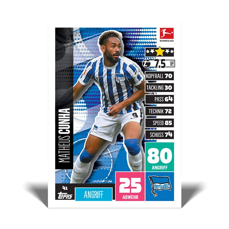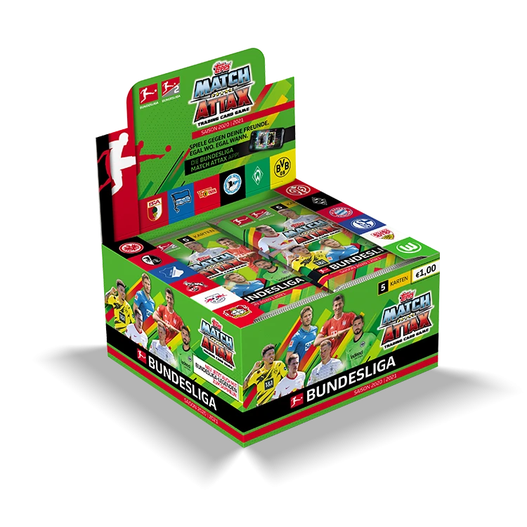 Die beliebte Serie Match Attax von Topps mit den Spielern der 1. und 2. Bundesliga der Saison 2020/2021 als Displaybox mit 50 Packs á 5 Karten. Sammel alle Stars aus der 1.Bundesliga und 2.Bundesliga, spannende Sonderkarten wie die Matchwinner und Club 100 Karten, Dauerbrenner, usw. Erstmals dabei sind 4 Bundesliga-Legenden.