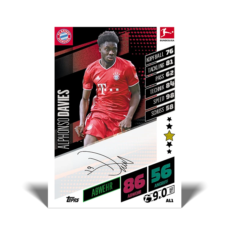Und mit viel Glück erwischst du eine von 333 streng limitierten Karten mit originaler Unterschrift des Bundesliga-Shootingstars Alphonso Davies.