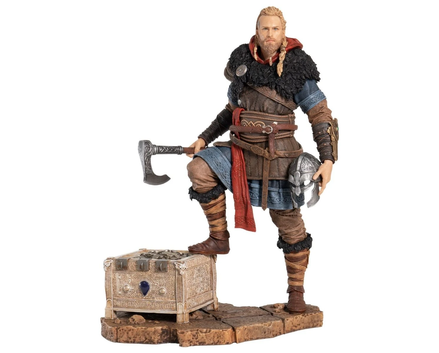 Raubzüge sind ein fester Bestandteil im Leben der Wikinger und Eivor konnte viele davon erfolgreich abschließen. Die Figur zeigt seinen Triumph und den gewonnen Schatz nach einer harten Schlacht. Besondere Features Eivor, der sich nach einem erfolgreichen Raubzug stolz in charakteristischer Pose zeigt.