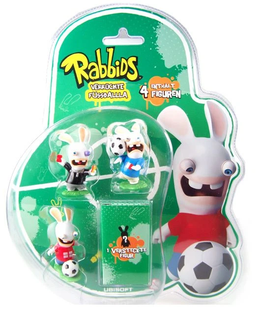 Passend zur Fußball Weltmeisterschaft 2010 stürmen die verrückten Hasen Raving Rabbids nun das Fußballfeld. 4er Figuren Set B Raving Rabbids verrückte Fussballla.