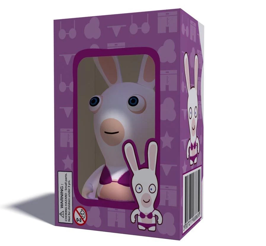 Zum abgefahrenen Spiel Rayman Raving Rabbids von Ubisoft die Figur des durchgeknallten Rabbid mit lilafarbenen Bikini. Der Hase wurde aus PVC gefertigt, kommt in einer schönen Windowbox und ist ca. 10cm hoch.