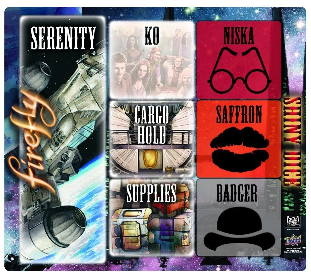 Das Upper Deck Würfelspiel „Firefly“ in englischer Sprache beinhaltet: